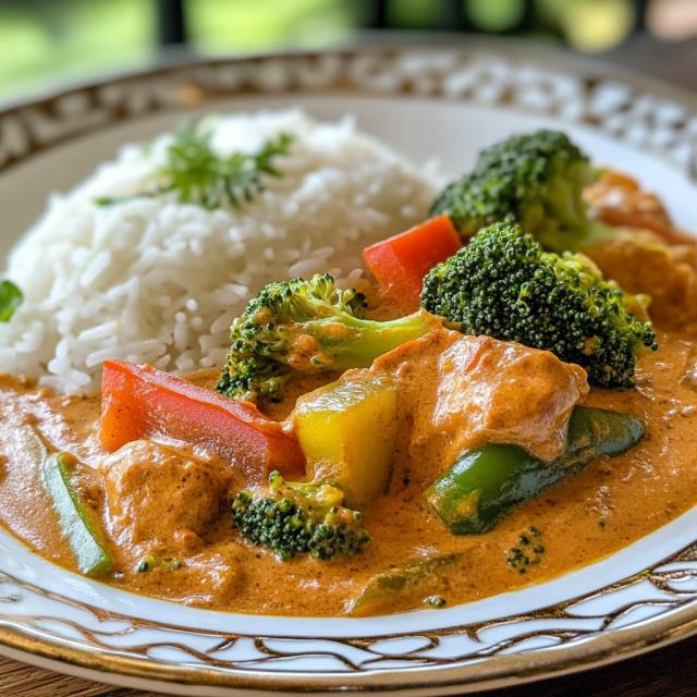 Grøntsagerne sauteres let i en smule olie ved moderat varme. Tilsæt den færdige thai red curry creme, samt sukker. Røres godt sammen.